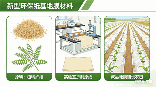 由于塑料地膜带来的严重的污染问题,可降解地膜成为研究的重点,目前国际上可降解地膜可以分为光降解地膜、生物降解地膜、生态液体降解地膜和纸基地膜。纸基地膜以植物纤维为原料,选用不同的浆料按照不同配比混合,将各种添加剂按照不同比例在不同工段按顺序加入浆内,充分混合后上纸机抄制,按照纸张抄造的工艺制备出原纸,再经过表面涂膜处理,抗水处理后,制备得成品纸基地膜。纤维原料是植物纤维属于可再生资源,资源丰富,种类多样,包括木质纤维、麻纤维、稻草纤维、麦草纤维、棉杆纤维、废旧棉短绒纤维或废纸浆纤维等。添加剂种类较多,主要分为增强剂、湿强剂、抗水剂、成膜剂等。 核心技术:(1)高干强度、高湿强度地膜原纸的生产;(2)地膜纸涂膜工艺,制备低透气或不透气地膜纸;(3)地膜纸抗水工艺,利用抗水剂制备长时间抗水地膜纸。 指标: 1.抗张强度:地膜纸应具有较高的抗张强度,以以保证在铺膜和长时间户外使用中不破损。 2.透气度:地膜纸要求尽量低的透气度,或者不透气,阻隔水分子和气体穿透,降低膜两侧的热传递,使地膜纸具有保温保湿性。 3.湿强度和抗水性:地膜在田间使用过程中,不可避免地会遭遇雨水,霜露、灌溉的影响。由于
