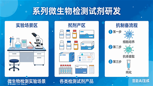 1、微生物检测试剂:针对畜禽养殖中的常见多发病原微生物(细菌、病毒)、食源性微生物,研制了系列检测试剂,既可以检测病原微生物,也可以检测抗体。系列检测试剂包括分子生物学检测试剂和免疫学检测试剂。分子生物学检测试剂有:LAMP 检测试剂、PCR 检测试剂、多重 PCR 检测试剂、荧光 PCR 检测试剂等;免疫学检测试剂有:ELISA 检测试剂盒、胶体金检测试剂盒、免疫荧光检测试剂盒、琼扩试验检测试剂盒、血凝—血凝抑制实验检测试剂盒等。齐鲁工业大学微生物与免疫研究所拥有多项微生物检测试剂盒研制的发明专利。 2、抗体:齐鲁工业大学微生物与免疫研究所掌握常见多发病原微生物的特异性多克隆抗体、单克隆抗体、基因工程抗体的高效制备技术,拥有抗体高效纯化、荧光标记抗体高效制备技术。 技术指标(或技术特点)、成熟程度: 1、研制的系列微生物检测试剂具有特异性好、灵敏度高、重复性好的优点。 2、专利技术研制的抗体、酶标抗体、荧光标记抗体的纯度达到电泳纯级别,特异性好,生物效价高。 应用领域及市场前景: 1、生物制药厂;2、食品厂;3、出入境检验检疫目前国内在检测试剂领域的研发尚处于初级阶段,有很多空白有待