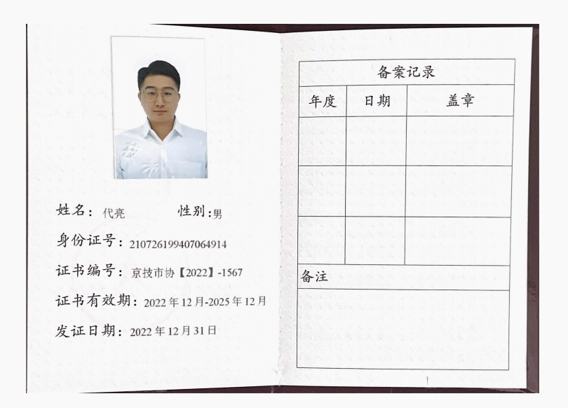 2、2022年12月参加北京技术市场协会组织的技术转移专业人员培训并通过考核,成为协会备案技术经纪人(技术经理人)。