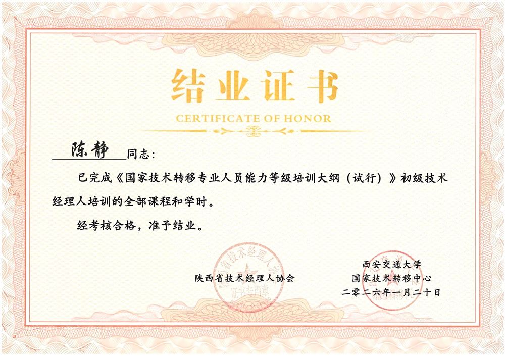 技术经理人证书