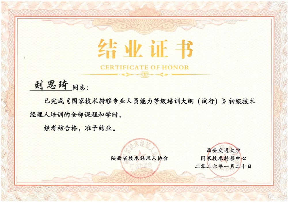 技术经理人证书